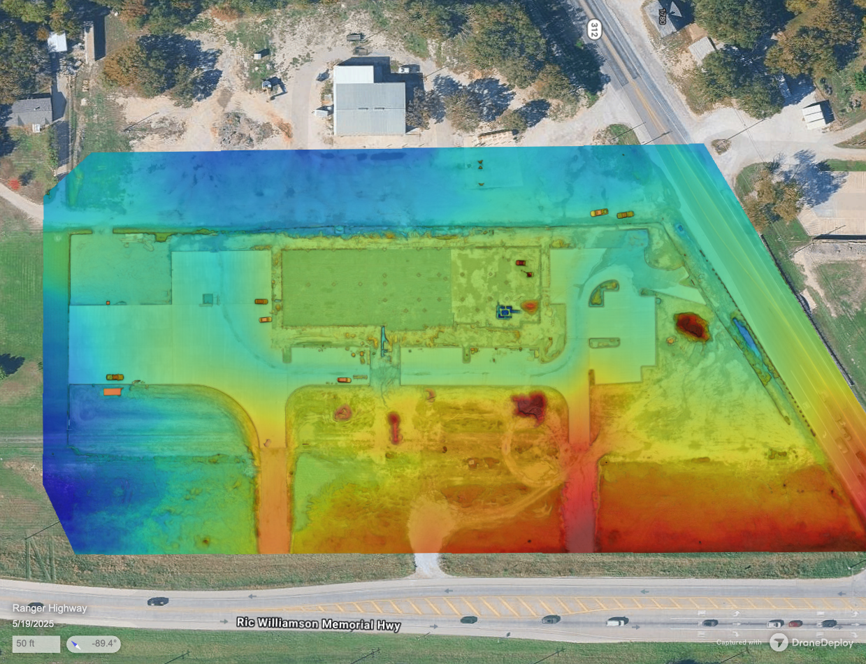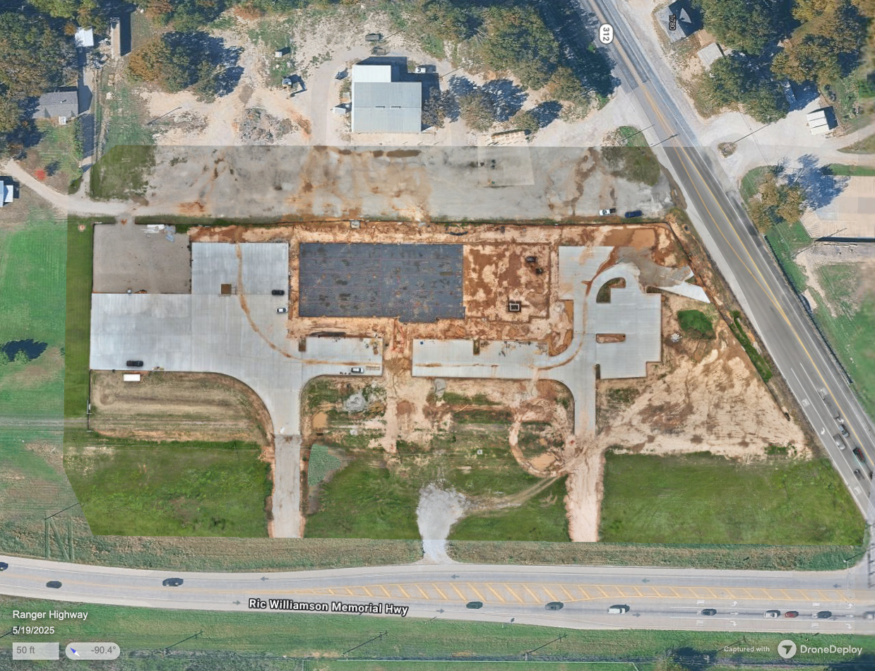 In 2025, JRJ Construction broke ground on a new headquarters building in Weatherford, Texas. Little Bird AI was able to document the early construction site conditions, establishing a comprehensive aerial baseline that would serve as a foundation for ongoing progress tracking.